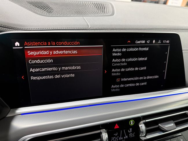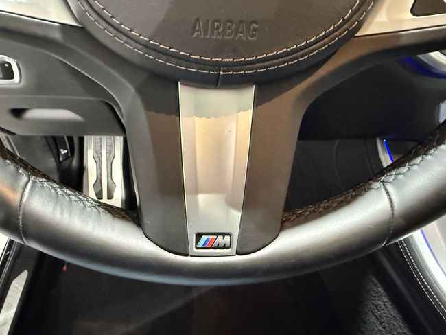 Equipado con paquete deportivo M interior y exterior/techo panorámico de cristal elect./asinetos de cuero elect. calefactados con memorias/navegador GPS/cámara de marcha atrás/volante multifunción M/apple car play o android auto/llantas 222/portón elect./bandeja trasera elect./asistente a la conducción/detección de semáforos/UP DYSPLAY/control de crucero con frenada de emergencia/llamada de socorro/asistente de aparcamiento/aviso de cambio de carril/faros de led/bluetooth/ordenador/control de tracción/sensor de luces y de lluvia/llave inteligente/reconocimiento de señales/.......